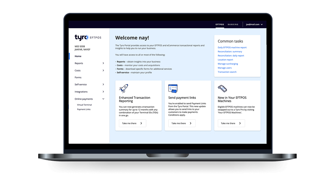 Monitor your sales in real time with the Tyro Portal and Tyro App.